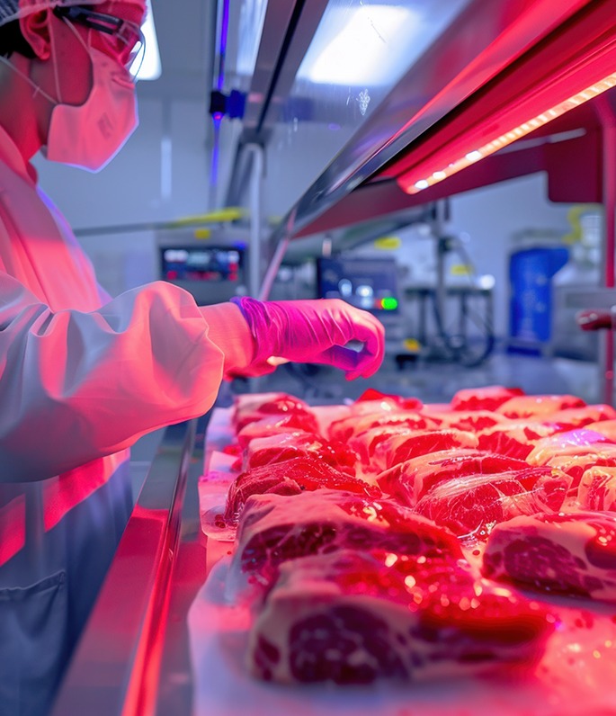 Também investimos em tecnologia de embalagem a vácuo. Nesse processo, o ar do invólucro é removido, criando um ambiente selado que preserva e aumenta a durabilidade do produto. Tudo realizado em um ambiente seguro e climatizado, de acordo com as normas do Sistema de Inspeção Federal (SIF).